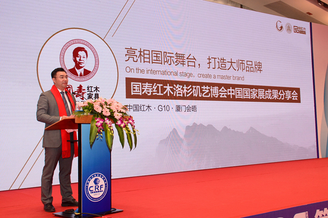 1月22日,荣获“2017中国红木家具十大影响力品牌”与“中国红木行业特别贡献民族品牌” 大奖;于厦门国际会议中心,国寿红木副董事长陈淦凡进行《国寿红木洛杉矶艺博会中国国家展成果分享会》的分享。