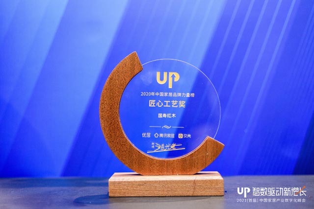 12月18日,2021(首届)中国家居产业数字化峰会,2020大果紫檀新品《玉如意沙发》荣获“2020年度家居行业产品大奖-匠心工艺奖”