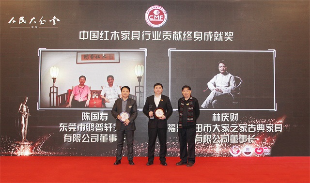 2014年,国寿红木在陈国寿的倾力打造下,创造了辉煌的成绩,他在经营企业同时,立足行业,主动担当起推动行业健康持续发展的责任,走在行业前头,带领大家更好地发展。毋庸置疑,陈国寿非常出色地做到了这些,赢得了业内的尊重和肯定,荣获“中国红木家具行业贡献终身成就奖”。