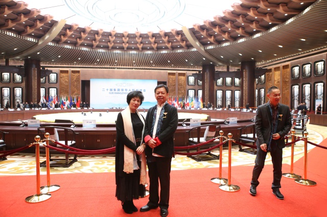 2017年陈国寿与夫人伦群章于G20峰会主会场合影留念
