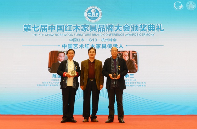 2017年在第七届中国红木家具品牌大会上被授予“中国艺术红木家具传承人”
