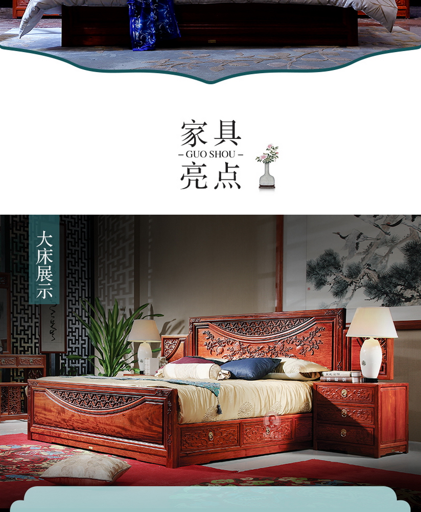 东方丹云福满堂大床/东方丹云床头柜(三斗)